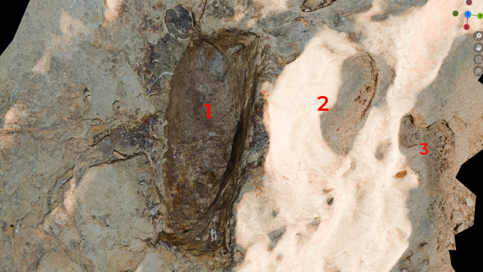 ¿Por qué sabemos que son huellas reales y no algo "hecho" por la naturaleza? Las pisadas son claras. La 1 es de un pie izquierdo, perfectamente plasmado en la roca, como si en la antigüedad, alguien hubiera pisado en una zona de llena de barro, de tierra blanda, y con el paso de los años se ha solidificado. Esto es así, puesto que aquella zona en la antigüedad eran margas, suelo blando, lo que pudo dar lugar al origen de estas huellas. En la figura número 2 podemos ver un pie derecho, posiblemente de la misma persona, aunque si nos fijamos bien, parece que pudo resbalar. Pero la determinación de que son huellas, a buen seguro, es que la figura número 3, podría tratarse de una pisada de algún cuadrúpedo, tipo oveja, cabra u otro tipo de animal por el estilo, lo que podríamos hipotetizar con la idea de que quizás, esta persona pudo ser un pastor, que pudo ir a la orilla de un río o arrollo ubicado al filo o borde de esta zona delimitada por una roca en la actualidad, donde se ubican las diferentes huellas.